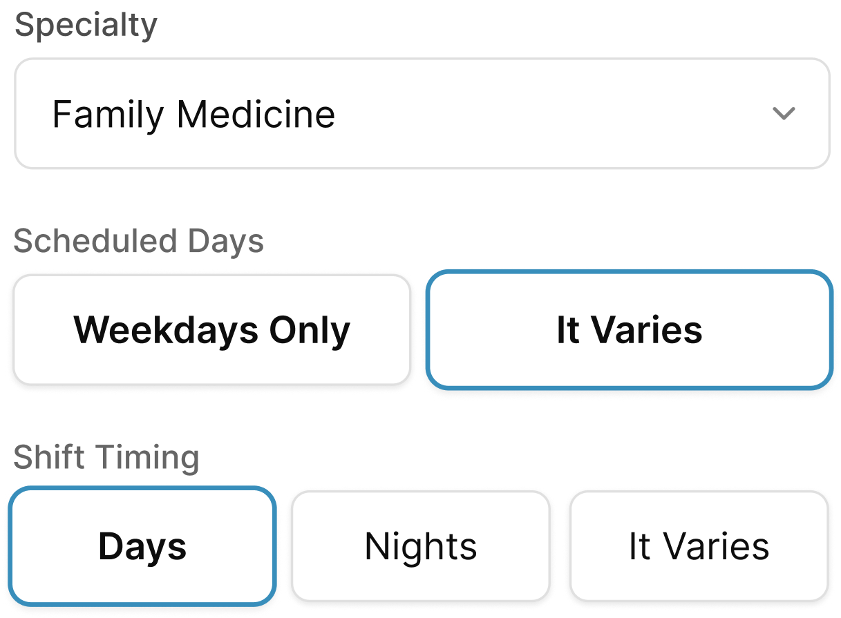 You guys have created an amazing tool. Every single physician, PA and NP should be using this - it's one thing to know average salary, it's another to know what's possible based on your location, how much you work, who you work for, etc.
